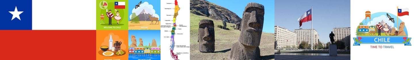 Chile es un país largo y angosto que se extiende por el borde occidental de Sudamérica, con más de 6,000 km de costa en el océano Pacífico. Santiago, su capital, se ubica en un valle rodeado de los Andes y la cordillera de la Costa. En la Plaza de Armas de la ciudad, bordeada de palmeras, se encuentra la catedral neoclásica y el Museo de Historia Nacional. El enorme Parque Metropolitano cuenta con piscinas, un jardín botánico y un zoológico. ― Google